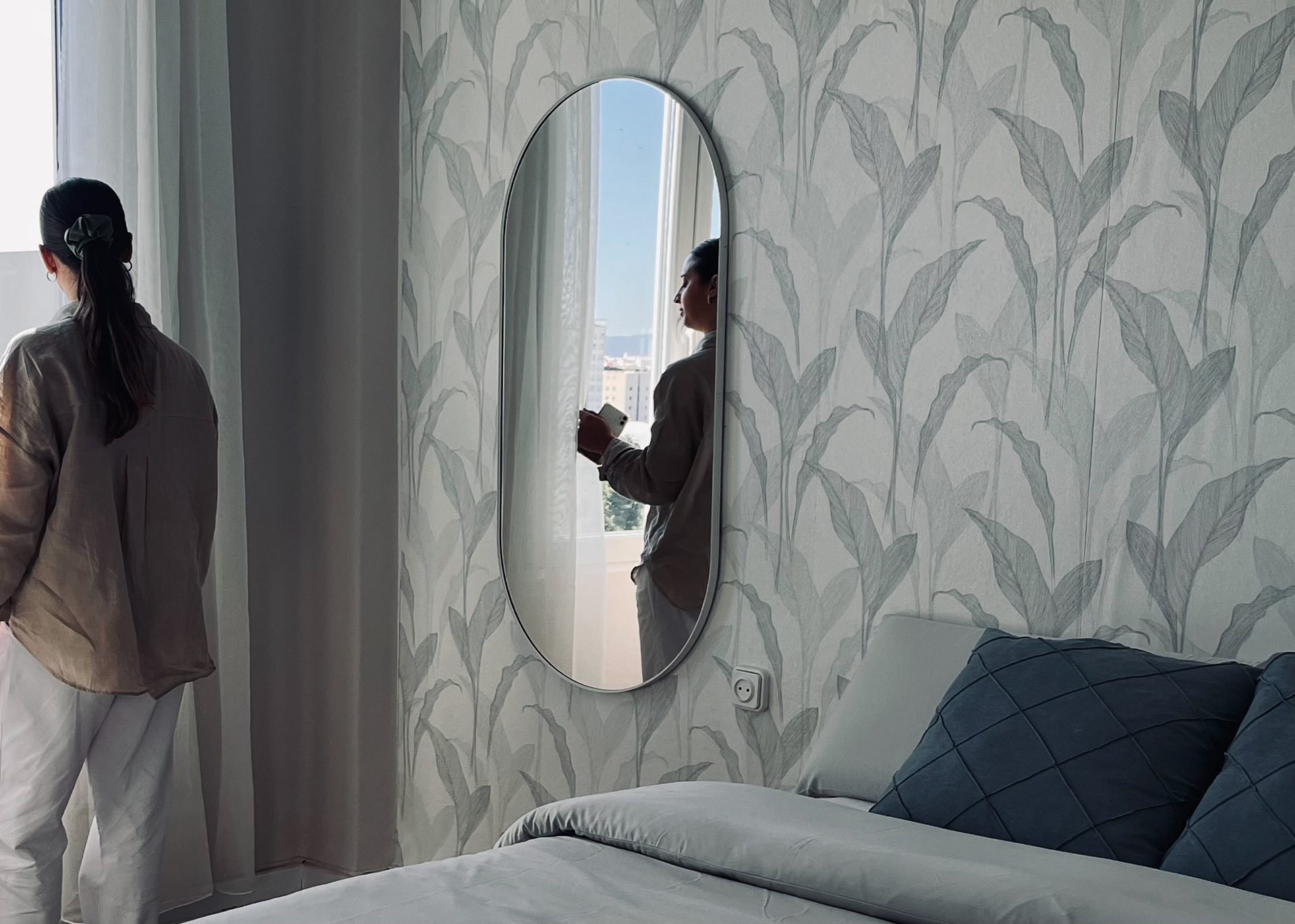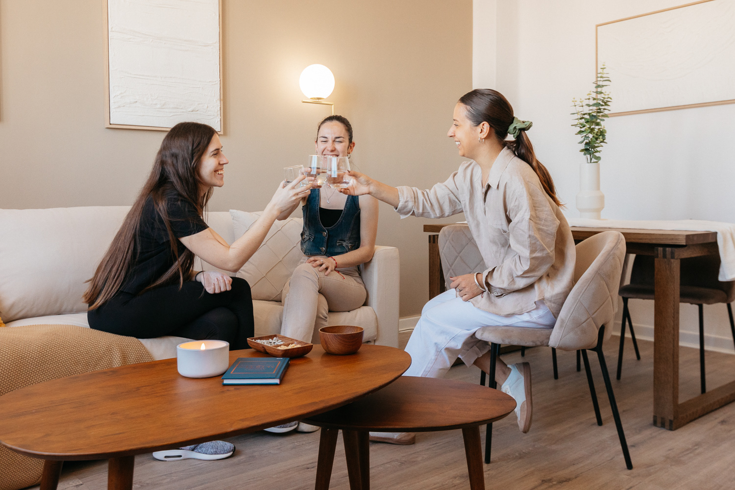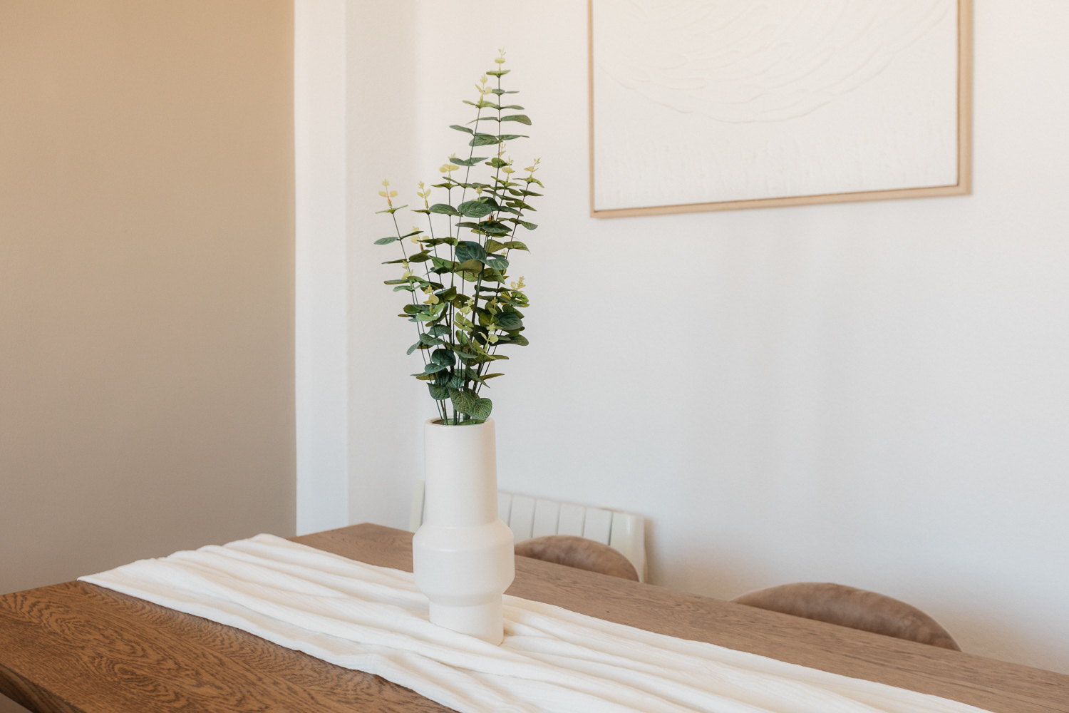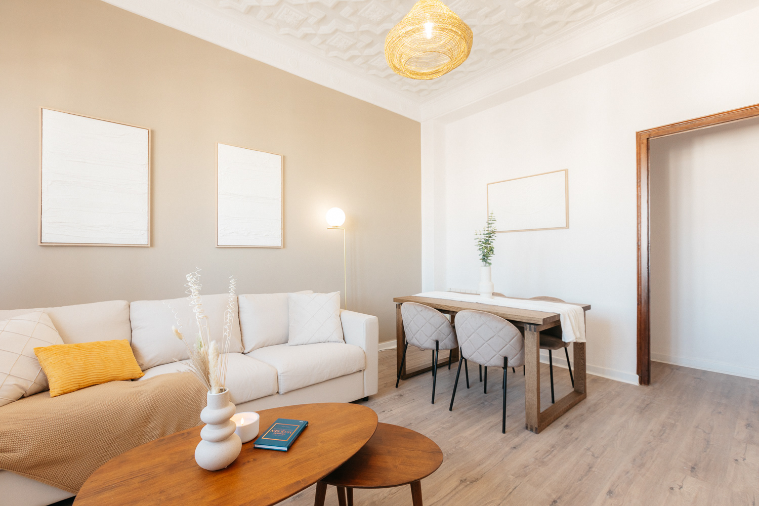 "Un refugio de tranquilidad en medio de la ciudad". Un espacio para 4. La remodelación de un apartamento frente al hermoso Jardín Botánico de Valencia. Donde la vegetación nos inspira y se refleja en cada detalle interior. Empapelados que simulan hojas, madera natural, colores tostados en contraste de blanco, suelo de parque, y el eminente ingreso de iluminación natural se armonizan para dar lugar a ambientes de relajación, compañía, creatividad y bienestar.