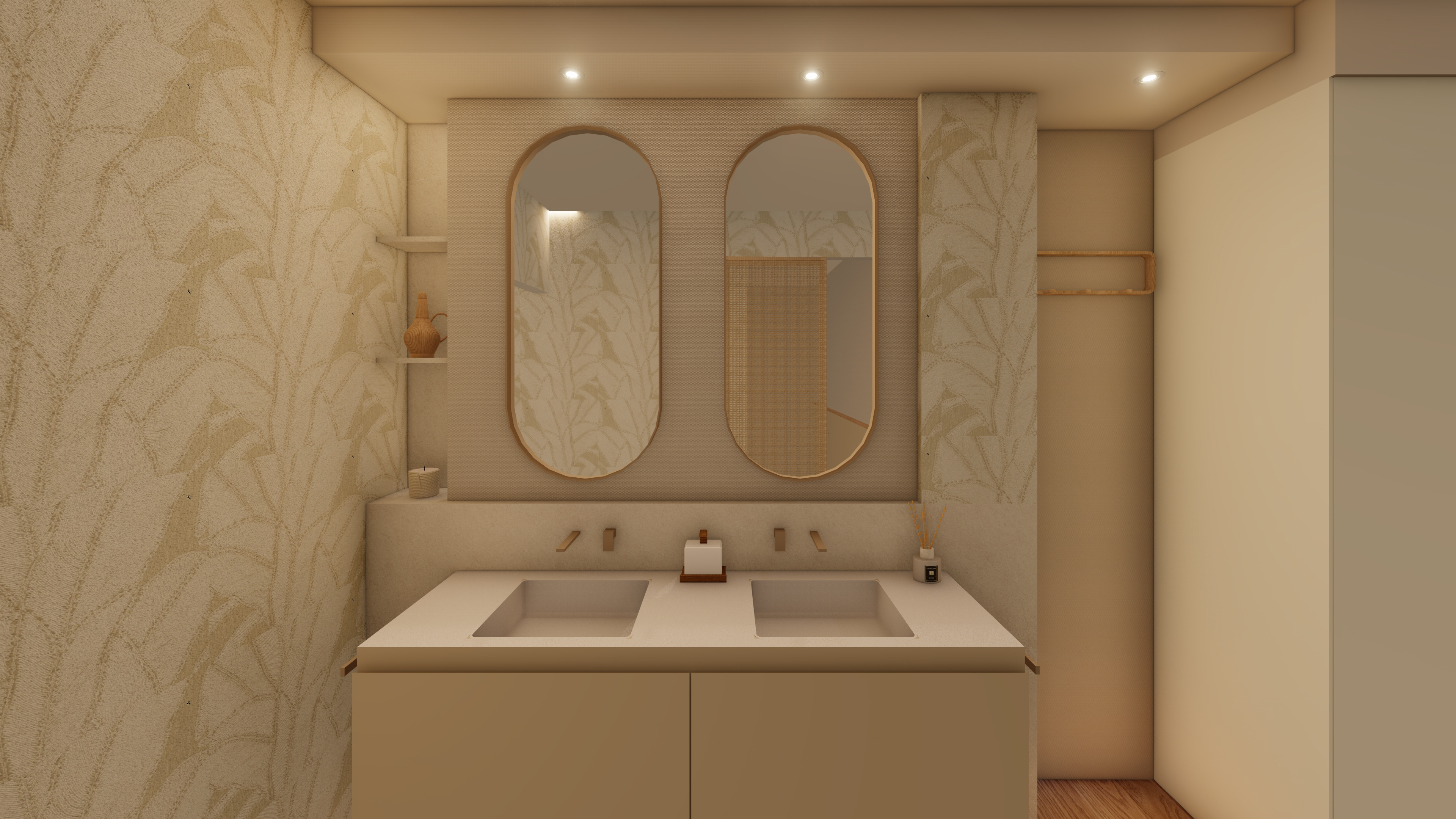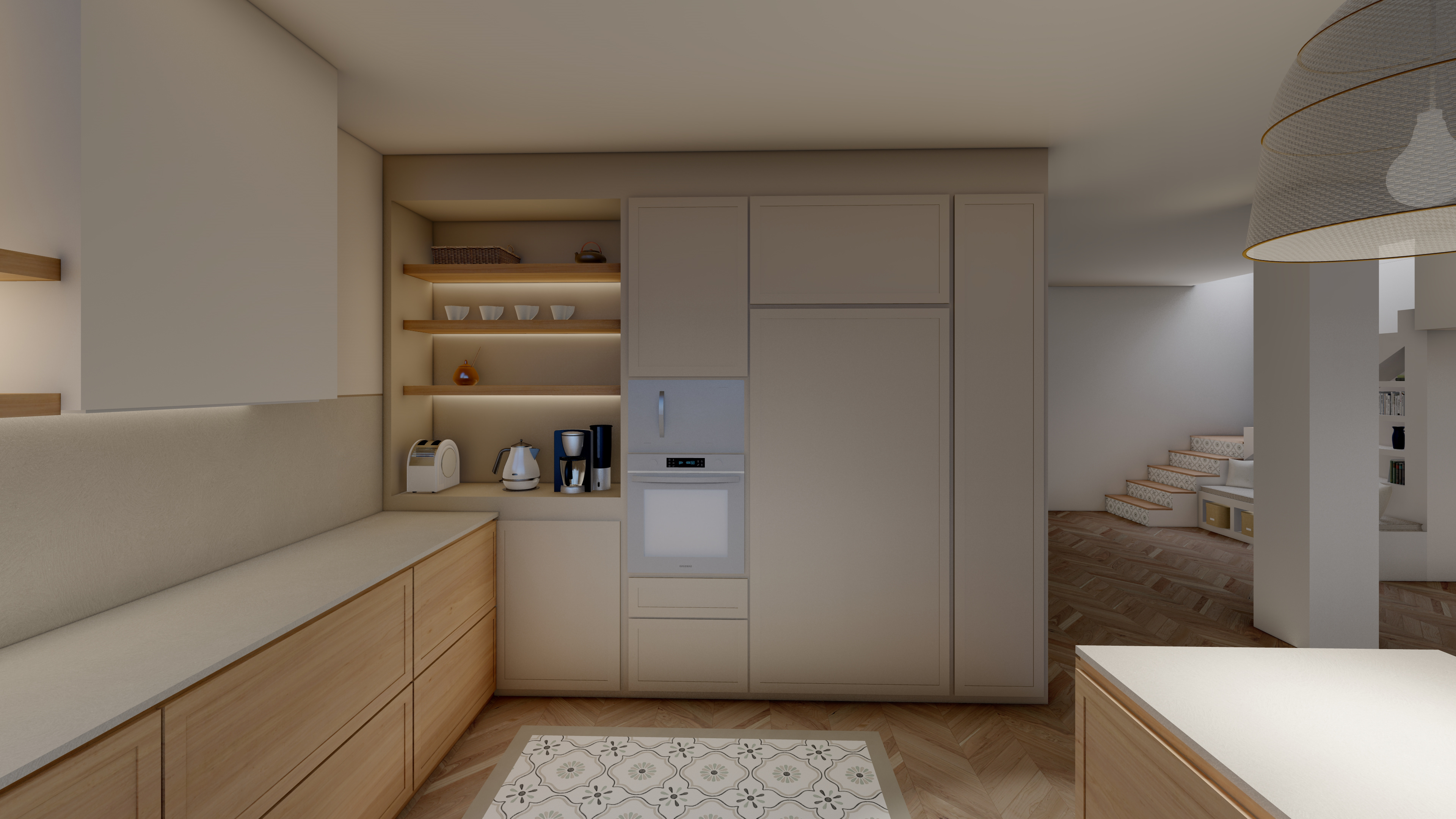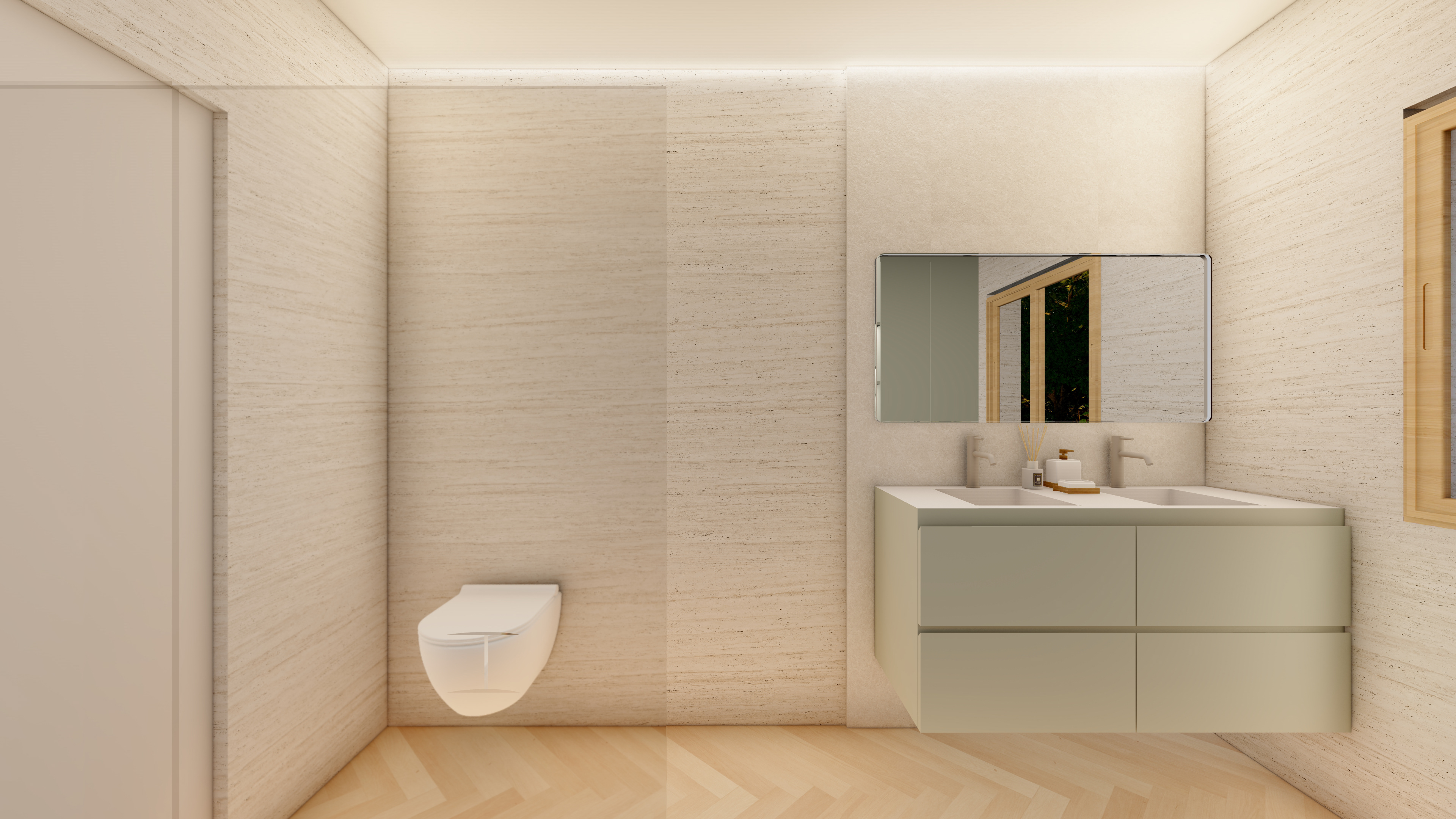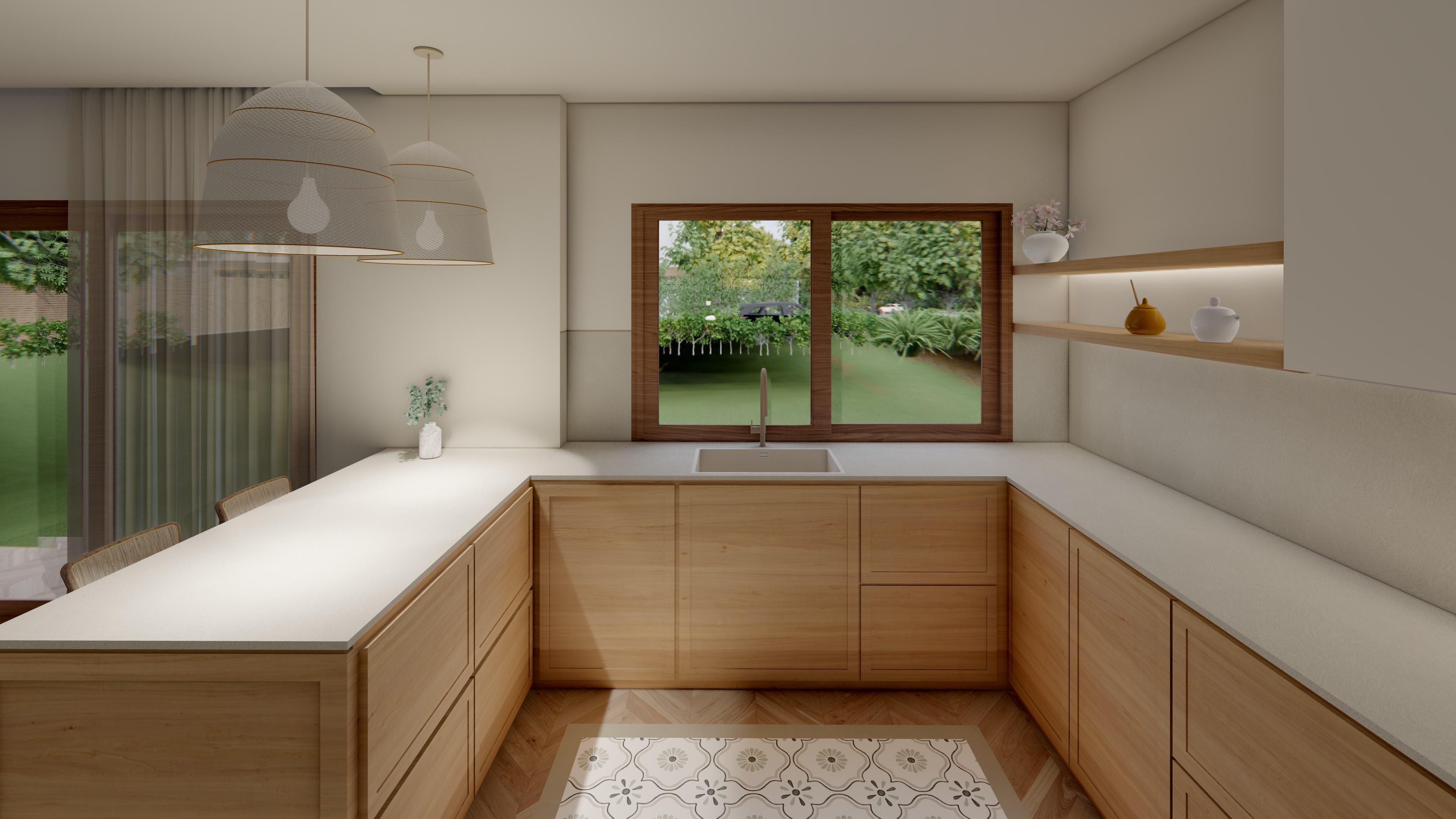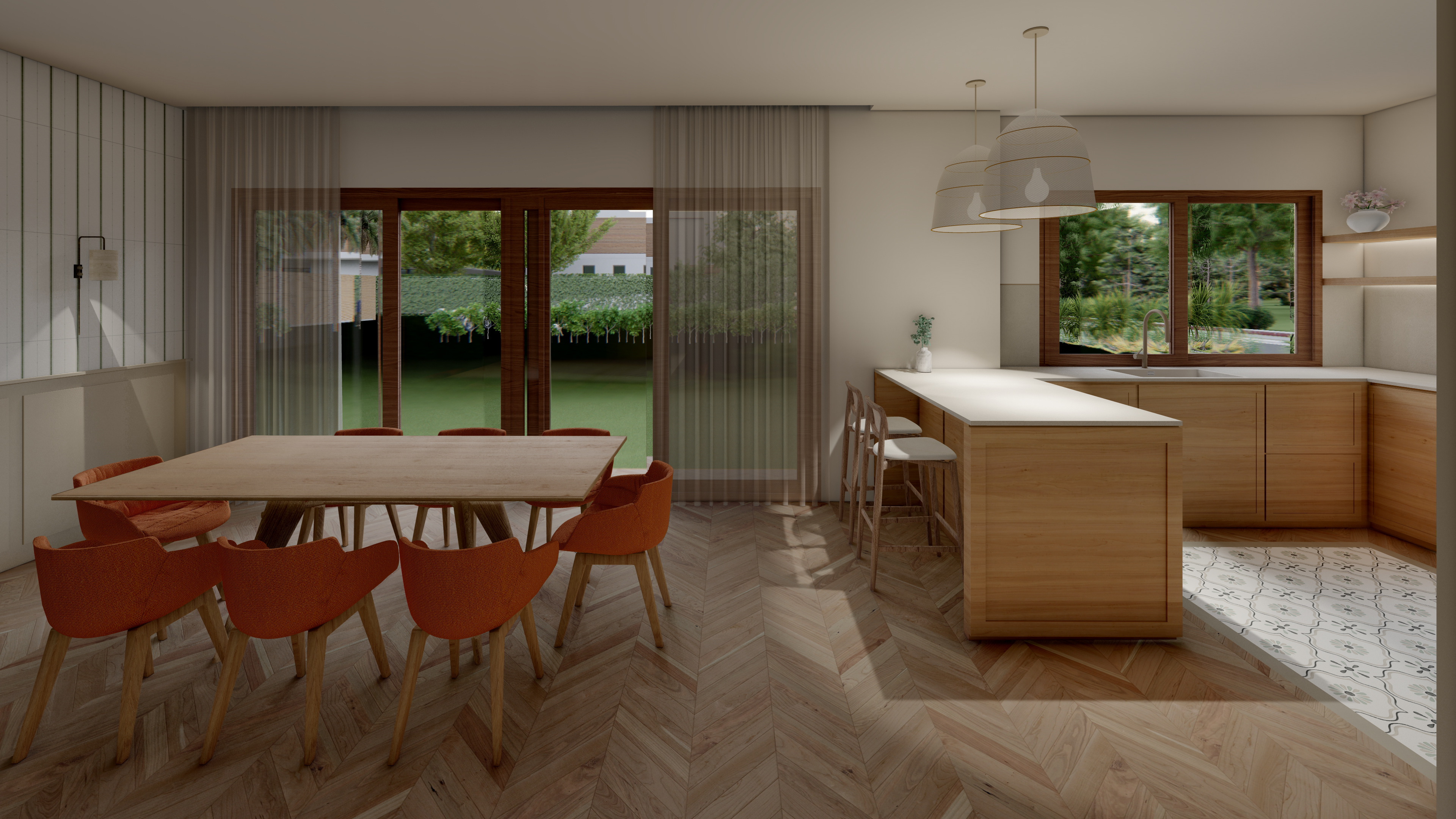 Un proyecto que traduce la esencia mediterránea en armonía material: maderas naturales, blancos luminosos y matices verdes que respiran frescura y equilibrio. A continuación les comparto las visualizaciones que hicimos antes de realizar la reforma integral de la vivienda SH.